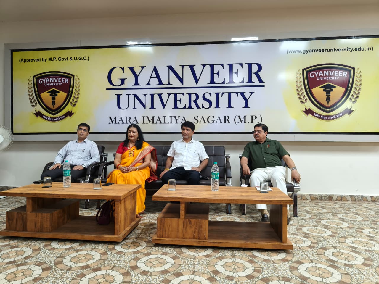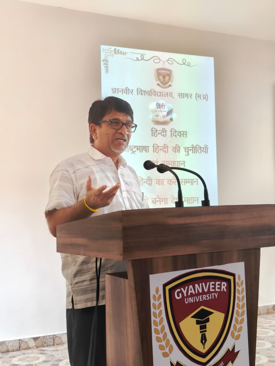 A program on Hindi Diwas 2025 was celebrated in Gyanveer University with the title Rashrabasha Hindi Ki Chunautiyan avam Samadhan . The Chief Guest of the program is Dr. Sharad Singh , Writer, Philosopher, Poet . The Special Guest of the program is Dr. Rajendra Yadav, Professor & Head, Department of Hindi Literature, Dr. Hari Singh Gour Vishwavidyalaya, Sagar. The guest's expressed their views on various challenges faced by the language and urged audience to use it in their day to day as well as official language of communication.