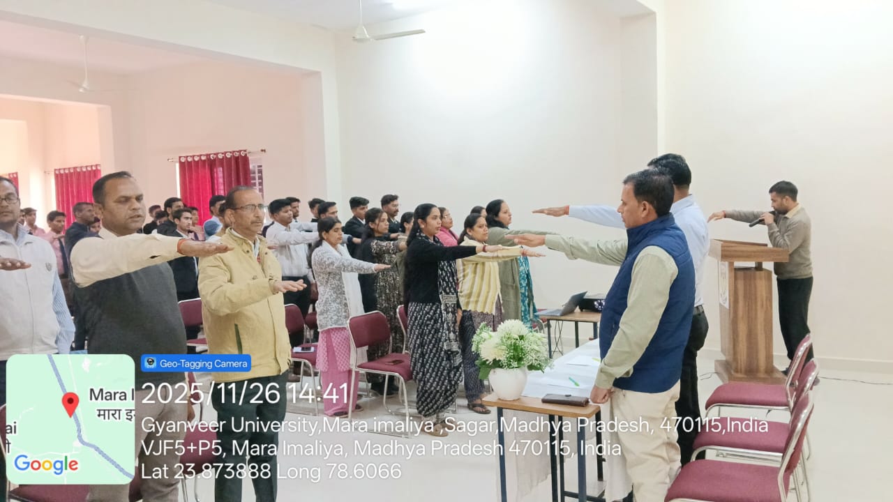 Celebration of the 156th Birth Anniversary of Dr. Hari Singh Gour and the Constitution Day was done in university on 26th November 2025. On this occasion various event wer organised in which students have participated with full enthusiasm . A pledge was also taken by the students and the faculties regarding the constitution day. Dr. Sachin Tiwari & Dr. V.S. Tomar were judges for the events.
